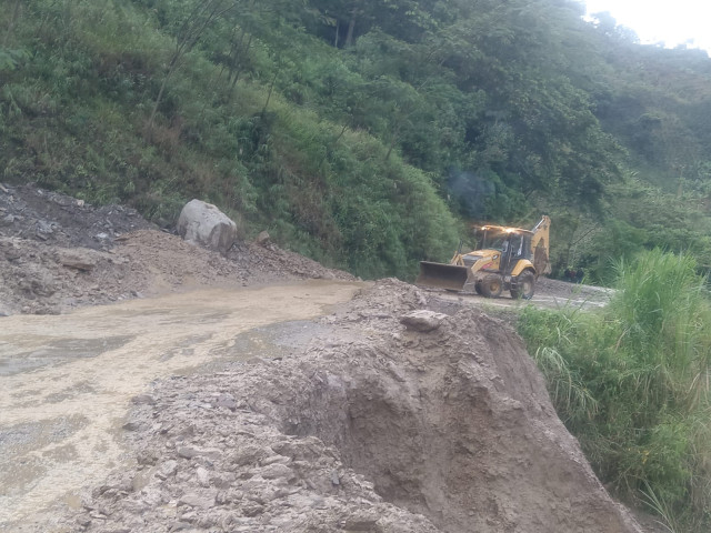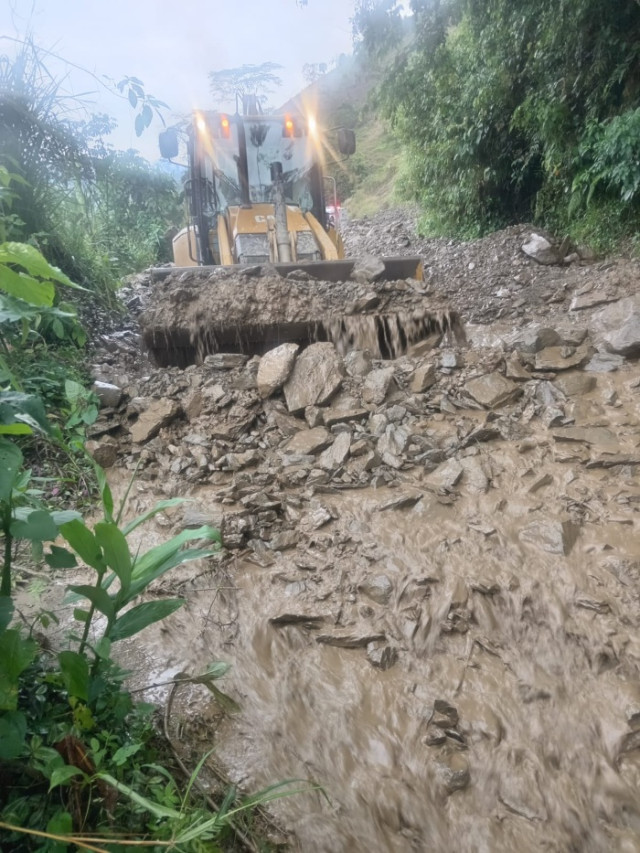 En fotografías se observan combos de maquinaria amarilla trabajando para habilitar el paso. Por eso, se les recomienda a las conductores tener precaución para transitar pues las lluvias puedes continuar y generar nuevos deslizamientos y taponamiento de vías.
