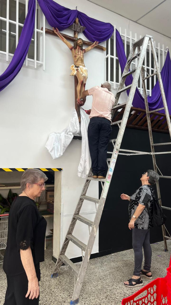 El supermercado El Proveedor decoró la entrada al establecimiento con motivos religiosos y así vincularse a la invitación de la Administración municipal de decorar las vitrinas de los establecimientos comerciales.