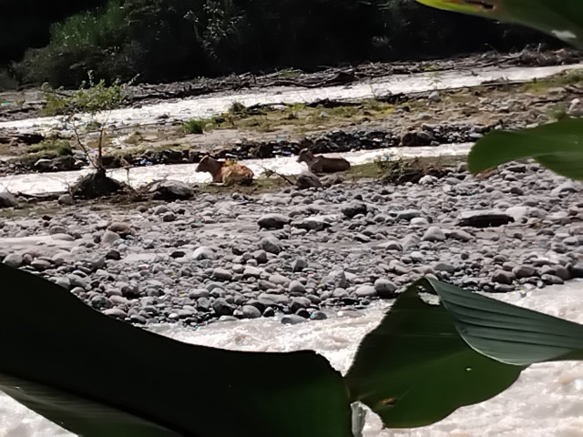 Dos semovientes de la finca aledaña al río quedaron atrapados en un islote, en medio del caudal.