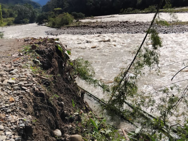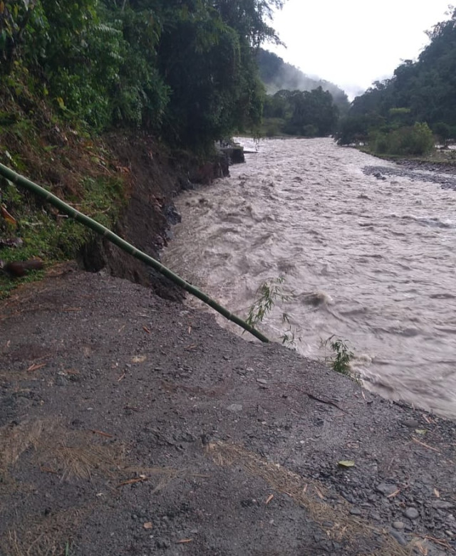 La creciente del río se llevó parte de la vía y cerró la carretera.