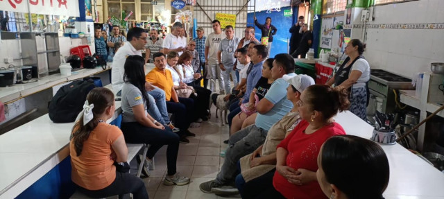 El alcalde de Anserma (Caldas), Ómar Andrés Reina, se reunió en la Plaza de Mercado con los locatarios de las seis 'sancocherías' del primer piso.