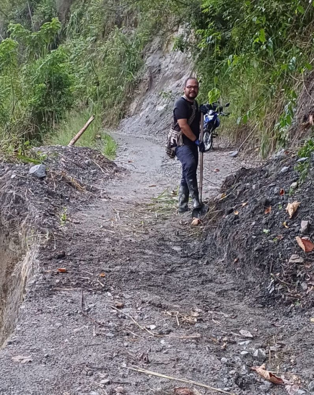 Este miércoles (30 de abril) acudió al derrumbe. "Conseguí gente para abrir vía. La despejamos un poco. Depositamos balastro", le relató a LA PATRIA mientras despejaba el camino. Su expectativa es que hoy en la mañana su yip y otros carros puedan volver a transitar por río Pozo.