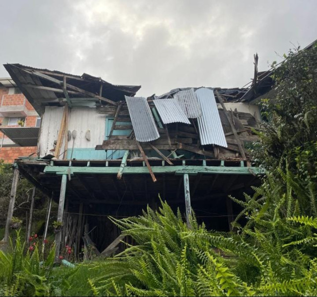 Una parte de una vivienda antigua de un municipio del Oriente de Caldas colapsó este lunes. La construcción será intervenida para evitar alguna emergencia futura.