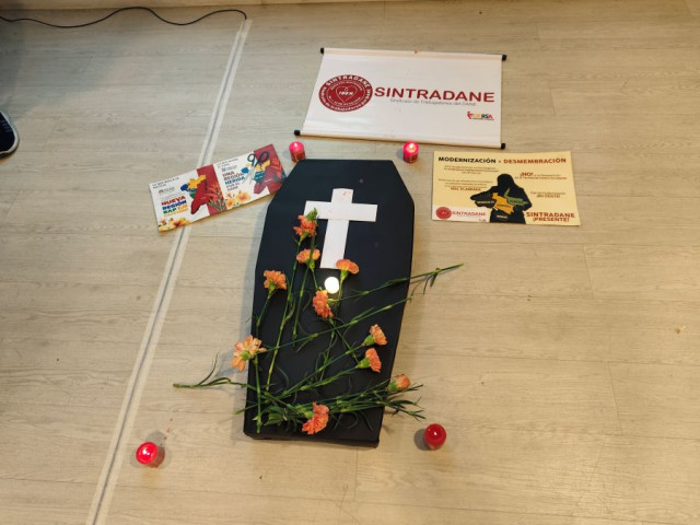 Velones y claveles fueron llevados por los integrantes del sindicato en protesta a la medida.