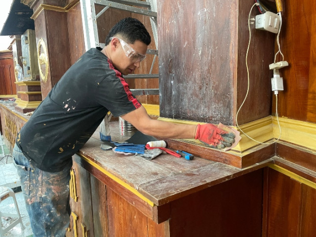Toda la superficie en madera se lijó, se tintilló y se inmunizó.