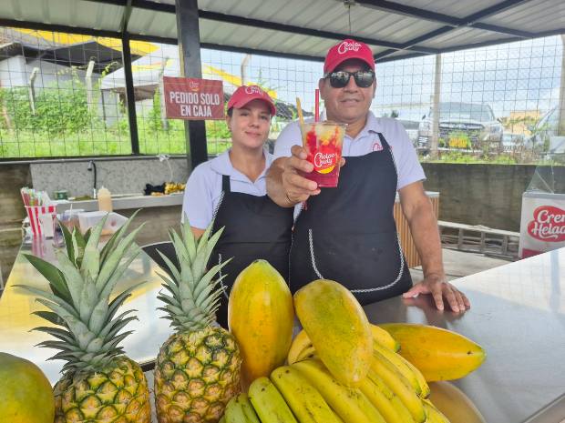 El primer secreto es que trabajamos con mucho amor. Lo otro es que utilizamos frutas muy bien seleccionadas, muy bien manipuladas. Entonces, el cholao lleva banano, maracuyá, piña, papaya y guanábana con hielo raspado para poder que la gente se refresque.