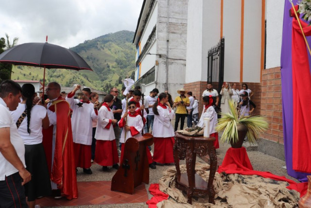 El recorrido fue desde La Arenera (salida hacia el corregimiento de Arboleda) hasta el templo parroquial Nuestra Señora de los Dolores, presidido por el párroco José Alberto Aristizábal con el acompañamiento de los sacerdotes Rubén Darío Gallo y Pablo Andrés Calderón.