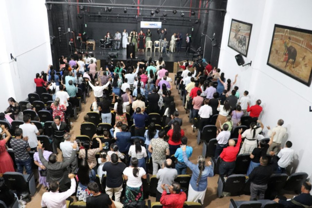 En el teatro municipal Pantágoras la Confraternidad de hermanos procedentes de San Daniel, Bolivia y Pensilvania tuvieron una celebración llena de música y alabanza con la presencia de varios pastores.