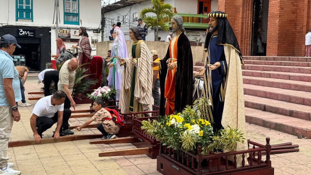 Se vieron los tradicionales recorridos, acompañados por los fieles con sus ramos, y las figuras religiosas con el marco de la arquitectura propia de la colonización antioqueña.