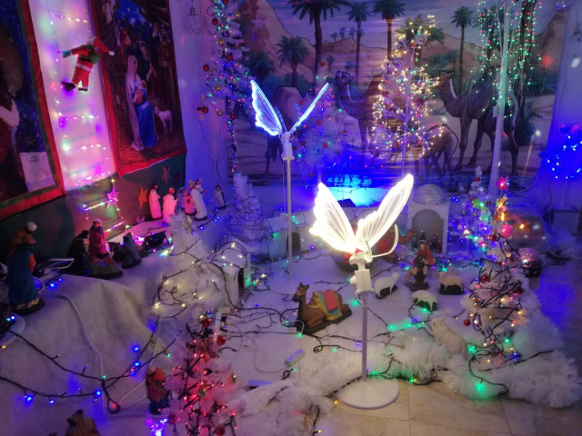 Pesebre en Riosucio elaborado por la señora Carmenza Henao Ramírez, quien desde antes de diciembre empieza a diseñar e instalar.