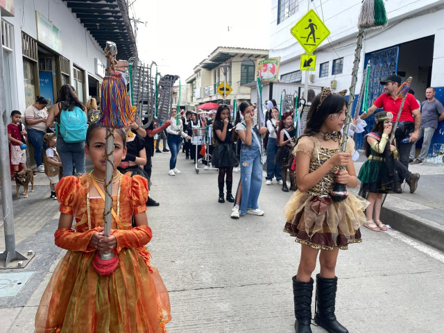 El gobernador de Caldas, Henry Gutiérrez Ángel, y el alcalde de Aranzazu, Sebastián Merchán Zuluaga, acompañaron el desfile de disfraces en el municipio.