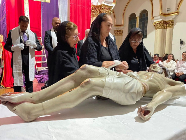 Foto | Diego Salgado | LA PATRIA Jesús después de ser bajado muerto de la cruz, procesión en Aranzazu.