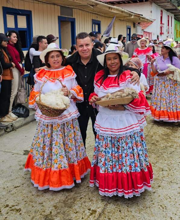 El cantante Albeiro Rincón, quien llegó desde Bogotá, también se gozó el Desfile de la Lana en Marulanda (Caldas).
