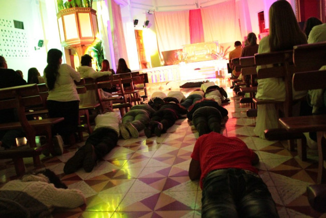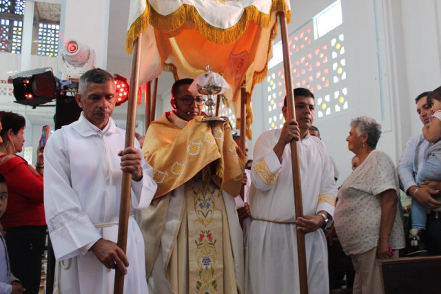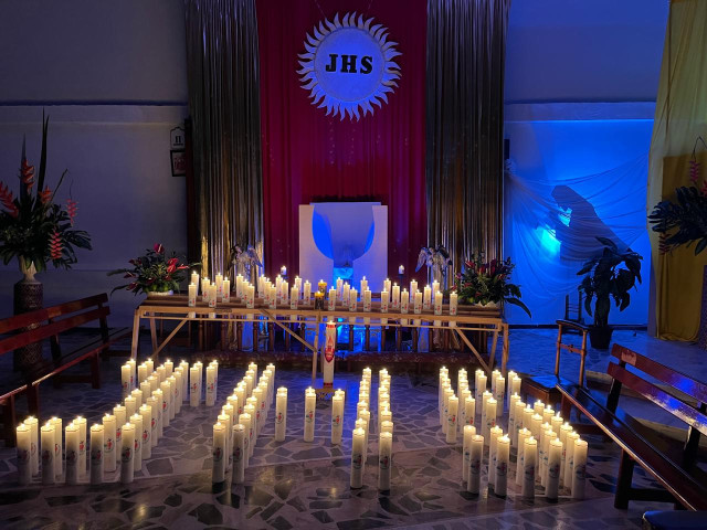 Adoración al monumento Jesús Eucaristía en el templo parroquial Nuestra Señora del Rosario de Aranzazu.