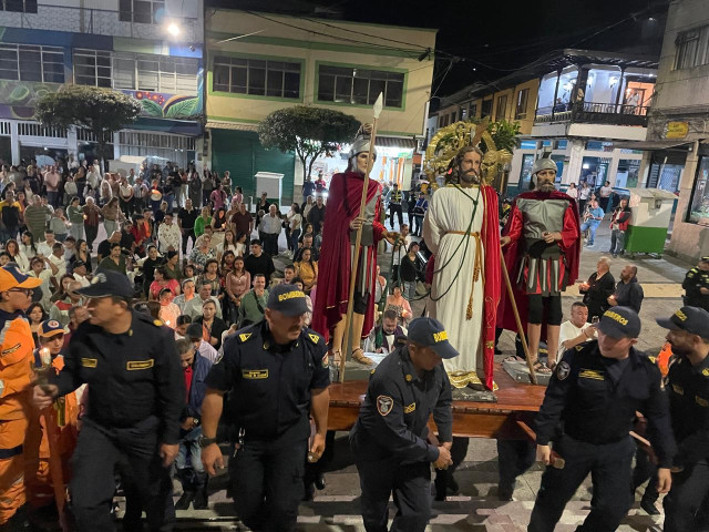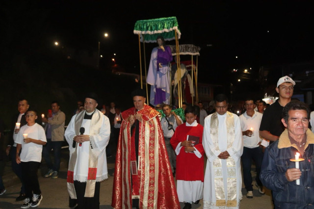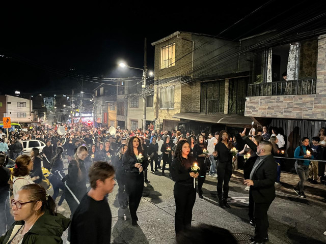 Procesión del prendimiento en vivo en el barrio La Enea de Manizales.