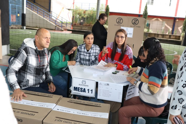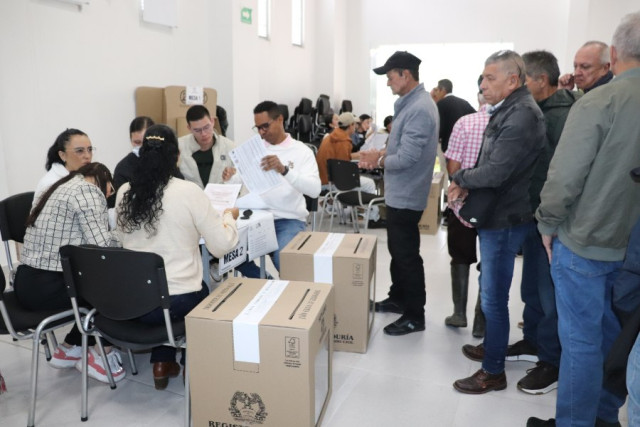 Luego de los actos protocolarios de apertura de las elecciones, el alcalde Jesús Iván Ospina depositó su voto en la mesa número 7.