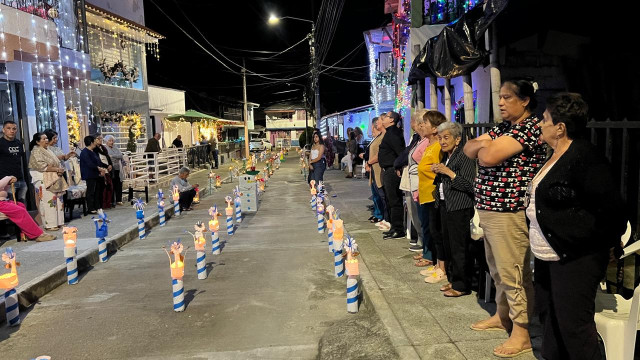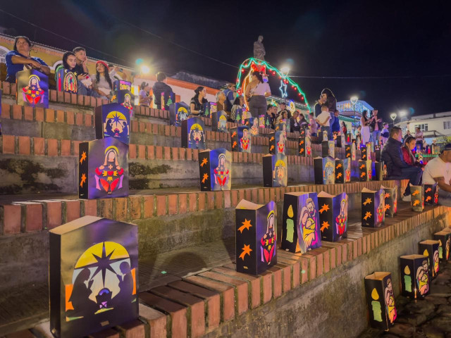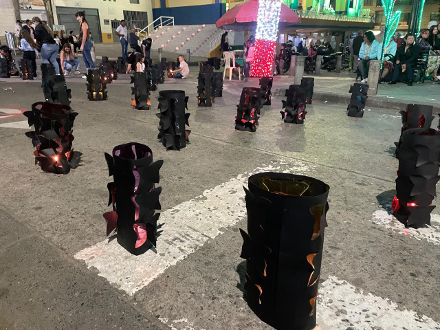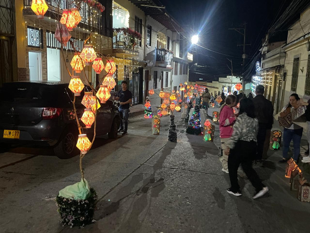 En la calle de la parabólica, en Aranzazu (Caldas), los vecinos elaboraron faroles con el motivo del templo parroquial.