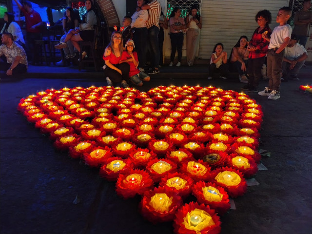 Con un corazón de velas y flores, en La Merced rindieron homenaje a la Virgen.