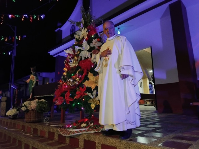 En el atrio del templo de María Auxiliadora se inauguró el alumbrado navideño en el corregimiento.