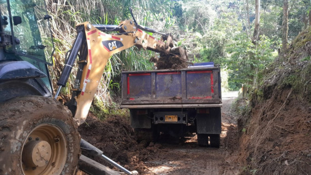 El combo de maquinaria amarilla de la Gobernación de Caldas atiende derrumbes en la vía Manzanares - Planes - Las Peñas - San Juan - La Siria.