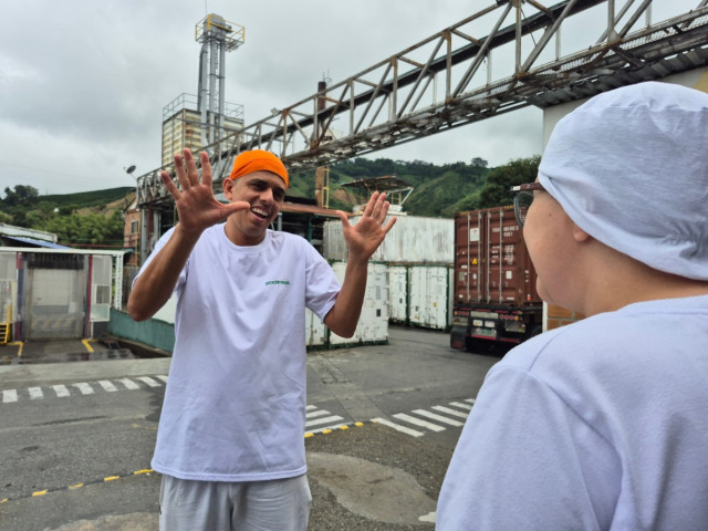 Castro exprime cada minuto de su labor con las frutas y con sus compañeros. Así se convirtió en líder de maquinaria, dedicado a los jugos, las extracciones y el pesaje. Antes estaba en el área de piña y mora. Ahora trabaja con mango y aguacate.