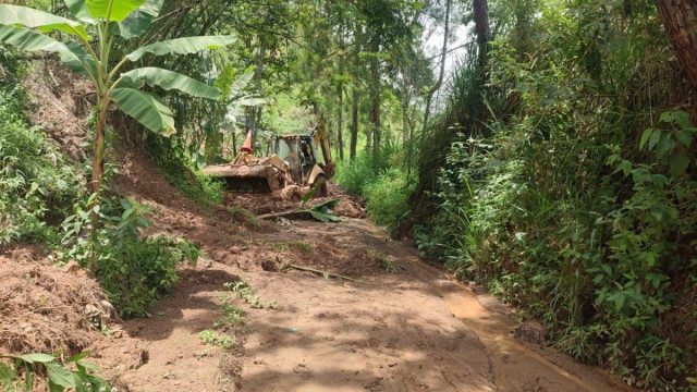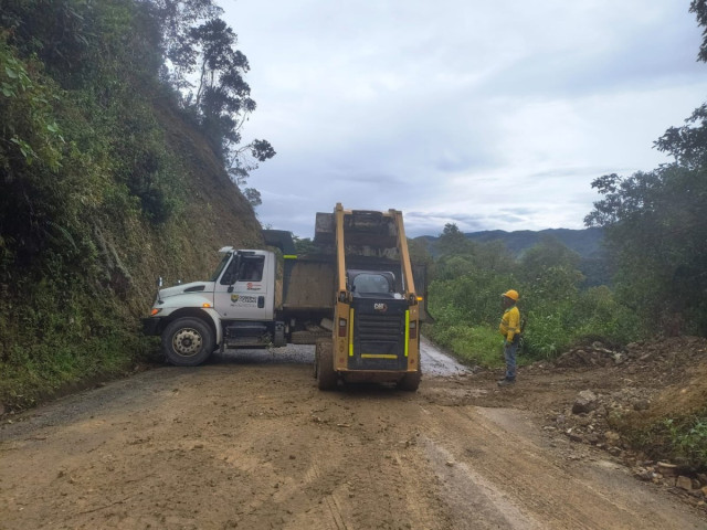 Atención de derrumbes en la vía Salamina - San Félix. La Gobernación de Caldas envió a un ayudante, una volqueta y un minicargador.