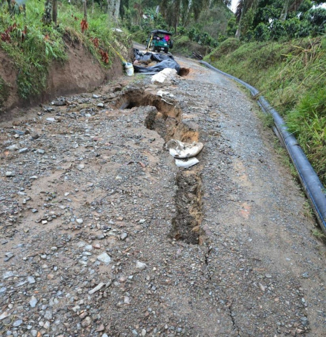 Una vía rural de Manizales pierde un carril. La Alcaldía informó que expertos evalúan la ruta. La Gobernación de Caldas también reporta 11 carreteras cerradas este martes (8 de abril).