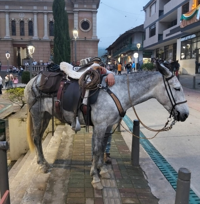 Algunos jinetes desmontaron sus animales y los parquearon en el parque principal del municipio.