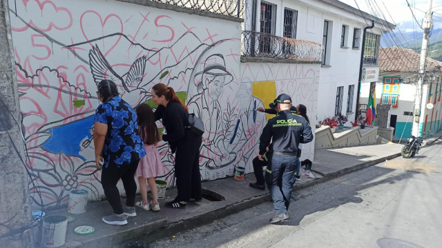 El mural se ubica al lado de la Estación de Policía y en él enfocaron su mirada no solo los uniformados, sino además los habitantes de este municipio del Norte de Caldas. Adultos y niños se unieron a esta bonita causa que busca exaltar la resiliencia de las víctimas.