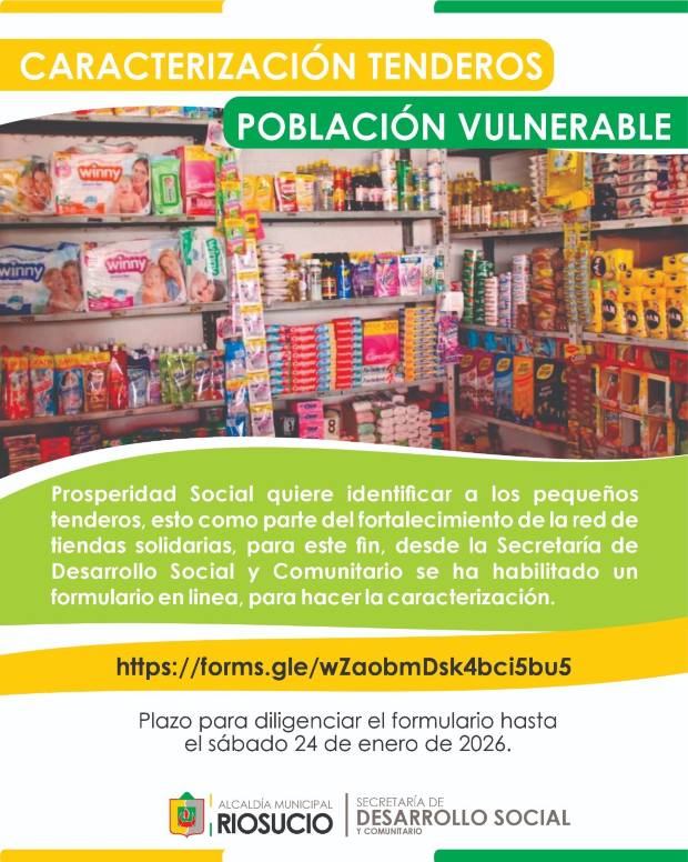 En el municipio se llevará a cabo la caracterización de pequeños tenderos población vulnerable.