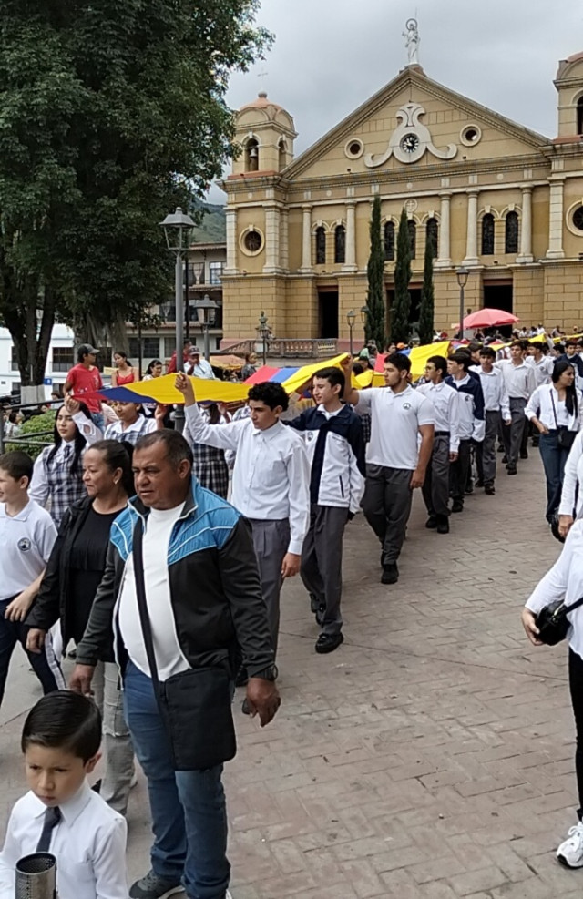 Desde las 10:00 a.m. las representaciones de la fuerzas vivas del municipio realizaron un desfile acompañados de integrantes del Ejército, la Policía y el Inpec.