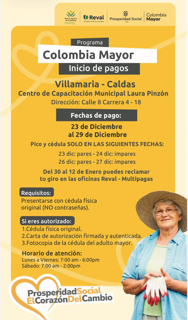 Desde el 23 de diciembre de este 2025 empezaron los pagos a los beneficiarios del bono pensional en Caldas conocido como Colombia Mayor.