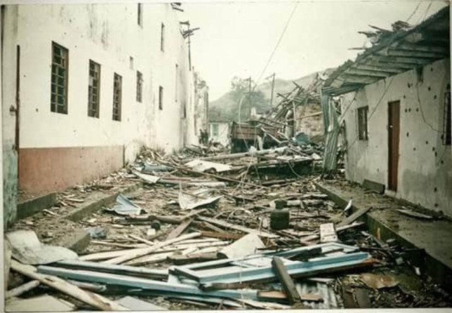 Antes. Misa celebrada a los cuatro días de la toma guerrillera en la esquina de la Casa Cural la cual fue destruida con cilindros bomba.