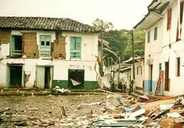 Antes: Las edificaciones que estaban en esta calle fueron destruidas por la carga explosiva que contenía esta volqueta.