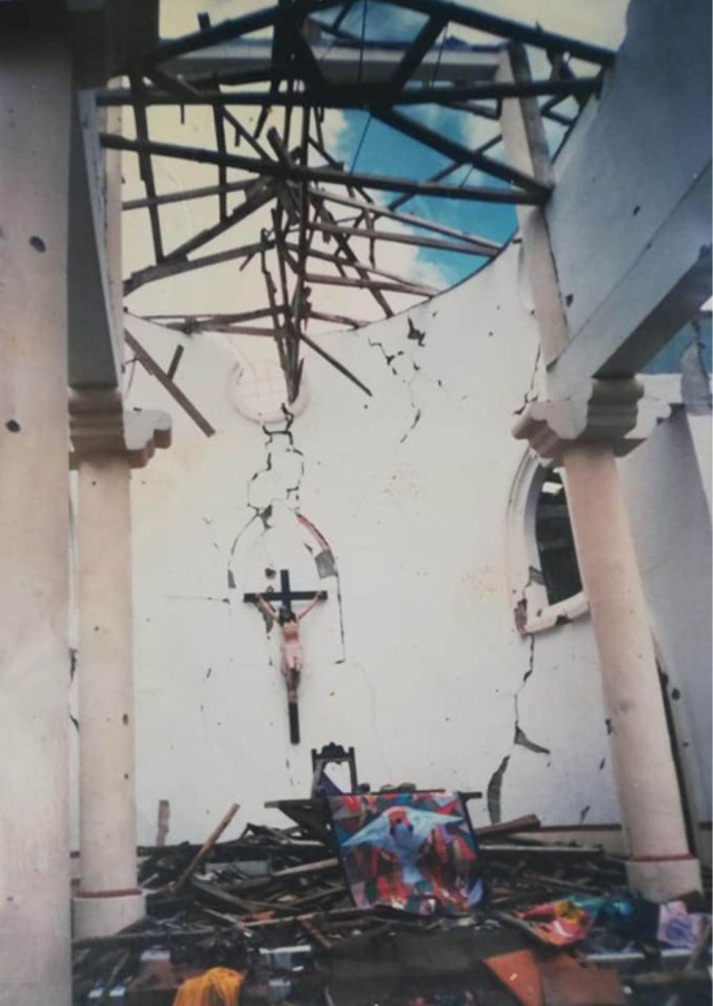Antes: El Cristo que estaba en el interior del templo no sufrió daños a pesar de la destrucción a su alrededor.