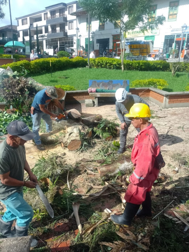 El Cuerpo de Bomberos Voluntarios de Pácora, con la ayuda del arborista Óscar Grajales y la coordinación de funcionarios de la Secretaría de Obras Públicas de la Administración local, se encargó de la recolección de los escombros.