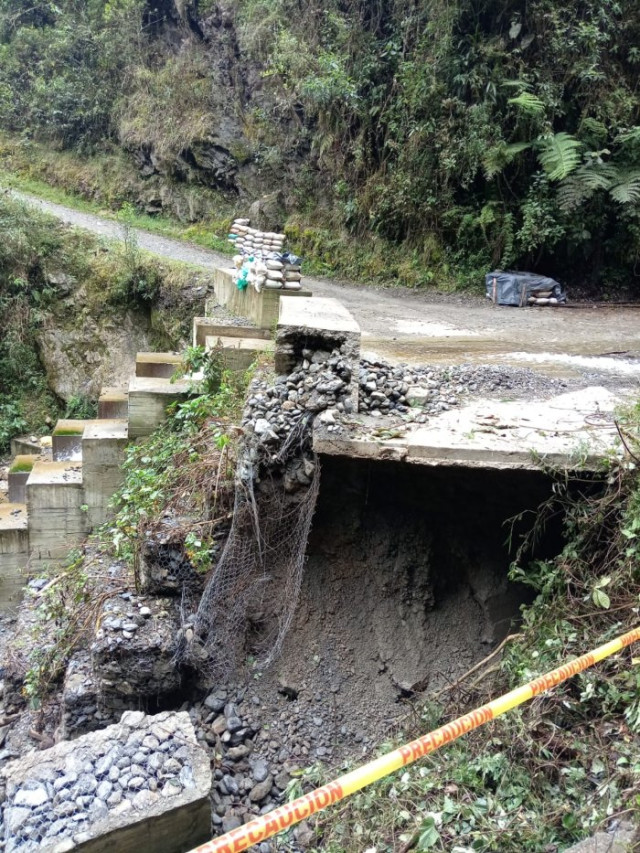 En fotografías se observa un desprendimiento de la vía, lo que no permite el tránsito de carros y motos.