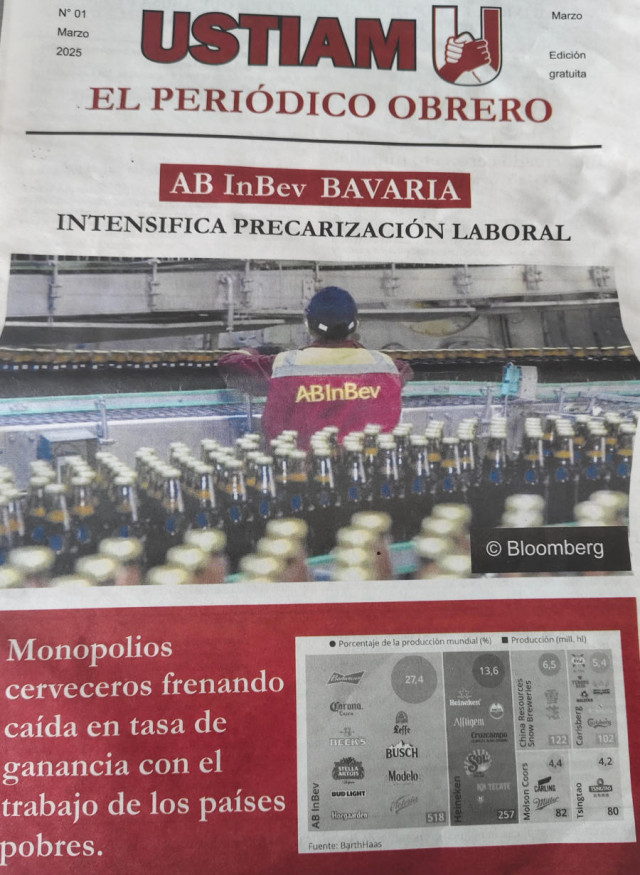 Ustiam, el periódico obrero es el nombre del medio que distribuye físicamente el Sindicato de Industria Cervecera, específicamente en Bavaria, desde marzo de este año para dar a conocer lo que realizan como organización.