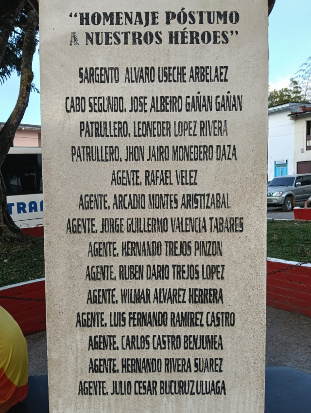 Esta es la placa conmemorativa que hicieron en homenaje a los policías fallecidos en la toma.