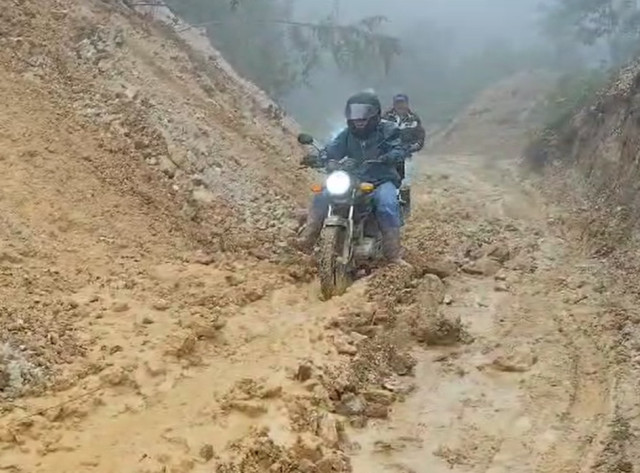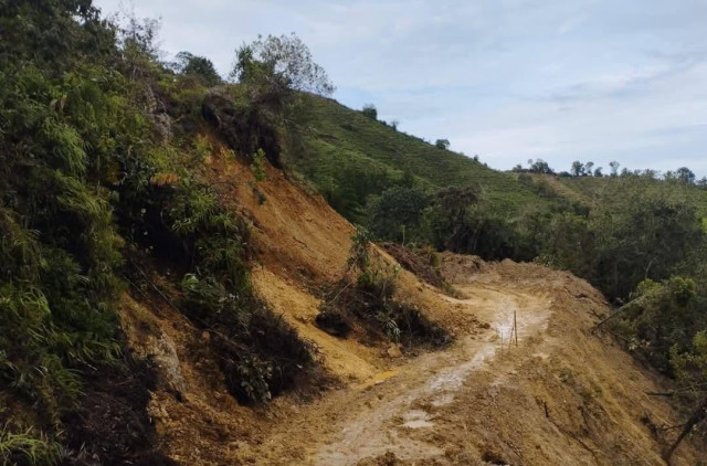 Maquinaria de Aguadas ha atendido la vía de Río Arriba desde marzo. Los derrumbes vuelven con las lluvias.