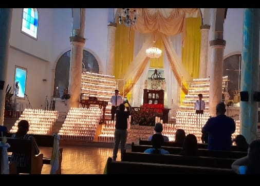 Samaná. Encendido de cirios, en la eucaristía de la cena del señor, parroquia San Agustín.