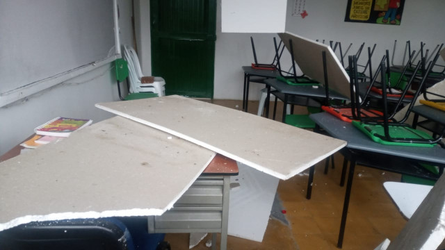 Los profesores de la institución encontraron pedazos de tejas y de cielorraso encima de pupitres y del material escolar este lunes (3 de febrero), cuando retomaron las clases. Hasta el mediodía no habían ido a reparar la electricidad de unas rejas, alertaron del peligro de unos cables que chispeaban.