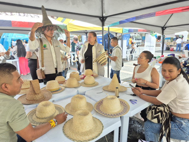 Desde Riosucio, Ángela Melisa Galvis González, Liliana Cárdenas y Teresa González mostraron sombreros tejidos a base de caña brava. "Tejiendo raíces es el nombre de nuestro emprendimiento. Nos pueden ubicar en Riosucio en la comunidad Las Estancias o en el teléfono 3195439391"indicaron.