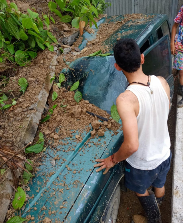 El pasado lunes (28 de abril), en el corregimiento de Buenos Aires, un derrumbe cayó encima de un vehículo.