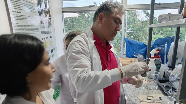 El magíster López durante las pruebas de laboratorio. Foto: John Fabio López, magíster en Ciencias – Farmacología de la UNAL.