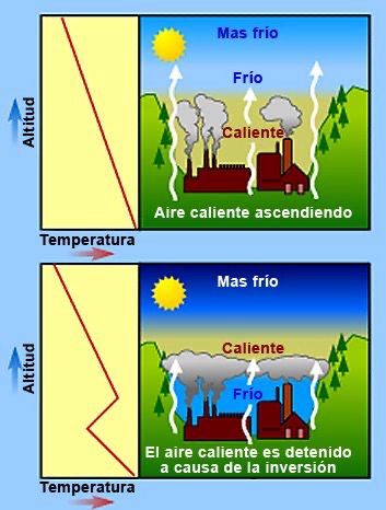 - En teoría, el aire frío queda atrapado abajo, el aire caliente lo presiona, pero no hay mezcla de esas masas de aire, eso hay que tenerlo en cuenta.