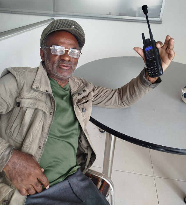 Foto l Tatiana Guerrero l LA PATRIA Los únicos medios de comunicación de Alberto son sus palabras y un celular Nokia modelo viejo.