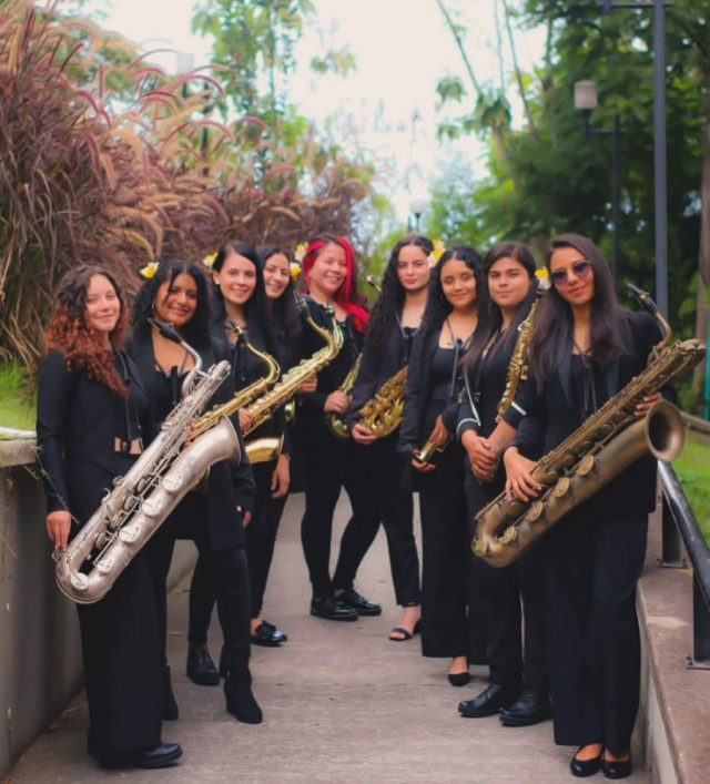 Descripción: Está conformado por estudiantes de pregrado y posgrado de Música de la Universidad de Caldas, quienes comparten no solo el amor por el saxofón, sino una visión de la música como herramienta de expresión, reflexión y transformación. Surgió desde el ámbito académico y ha encontrado un espacio fértil para desarrollar un repertorio exigente, variado y profesional que abarca desde obras clásicas del repertorio universal hasta composiciones contemporáneas, jazz y arreglos especialmente creados de música tradicional colombiana. Está integrado por Valentina López Arroyave, Stefany Andrea Díaz Loaiza, Karen Daniela López Grajales, Laura Vanessa Noguera Gómez, Isabela Rendón Mejía, Natalia Cardona Betancurt y Alejandra Gómez Ortiz.