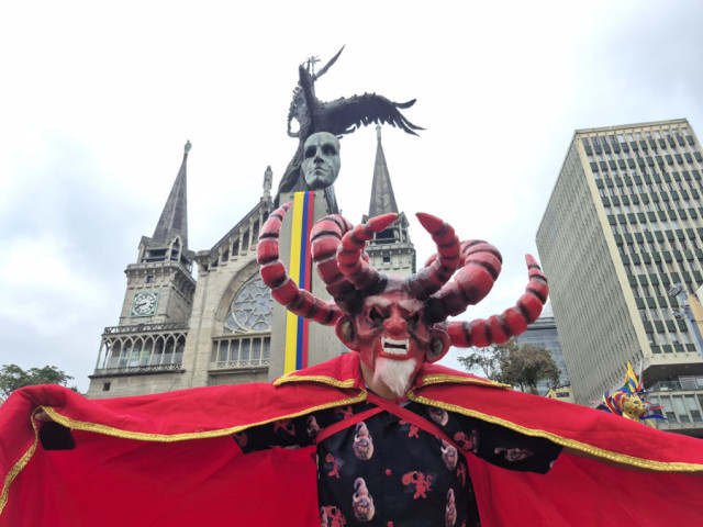 Grandes máscaras alusivas al diablo se vieron por la carrera 23 de Manizales.