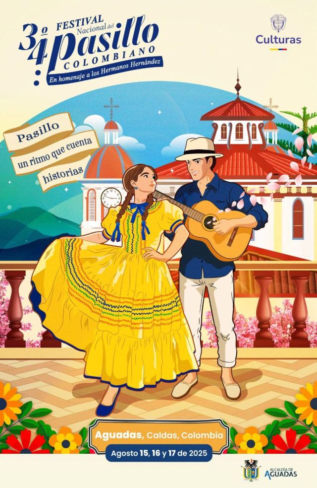 La edición 34 del Festival Internacional del Pasillo Colombiano que se realiza en Aguadas (Caldas) ya cuenta con su afiche oficial para comenzar a promocionar este evento que exalta a los músicos e intérpretes de la música andina colombiana.